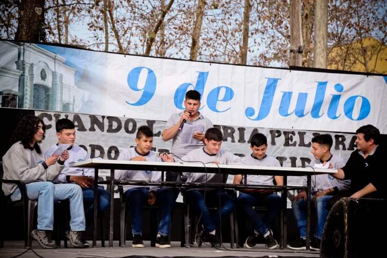 El martes 9 de julio en Plaza San Martín se realizó el acto oficial por el 203 aniversario de nuestra Independencia, con la participación de las Escuelas N° 262 “Domingo F. Sarmiento”, N° 291 “Tte. Cnel. Fray Luis Beltrán” y N° 635 “Juan Bautista Spagnolo”.