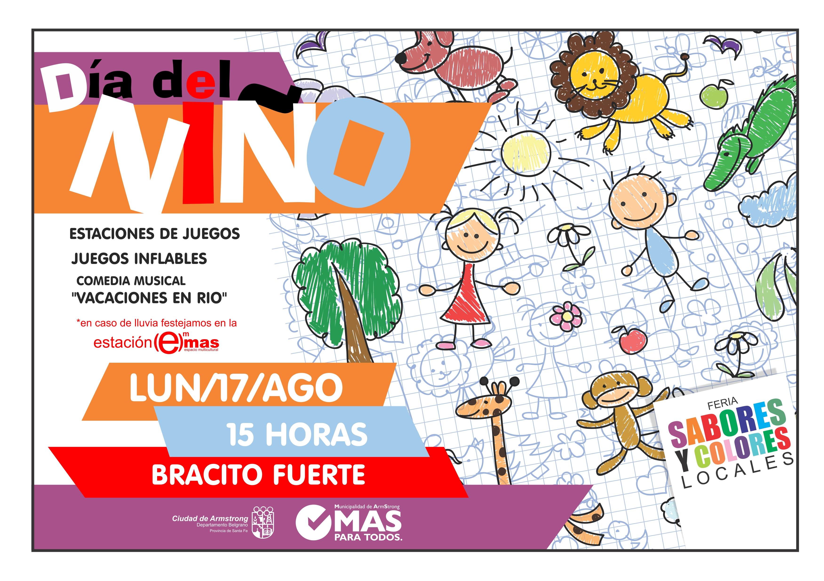 La Municipalidad de Armstrong invita a toda la ciudadanía a participar de los festejos por el día del niño que se realizarán el lunes 17 de agosto a partir de las 15 hs. en el parque Bracito Fuerte.