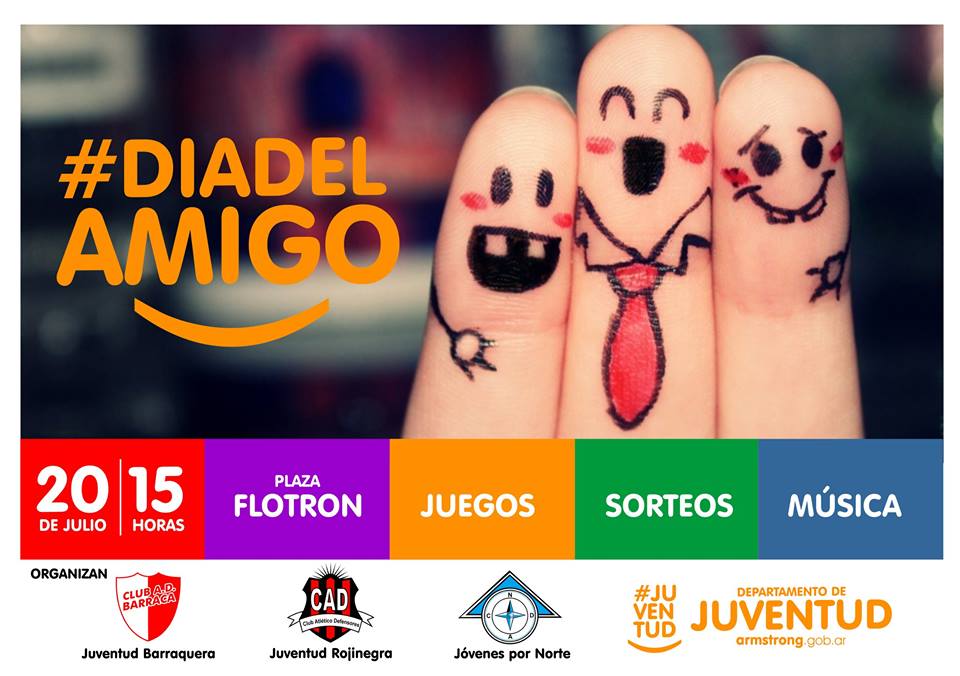 El Gabinete Joven de la Municipalidad de Armstrong, invita a los amstronenses al Festejo por el Día del Amigo, que se llevara a cabo este miércoles 20, a partir de las 15:00 hs en la Plaza Flotron.