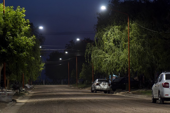 La obra de cordón cuneta se acompañó con la instalación de nueva iluminación led.