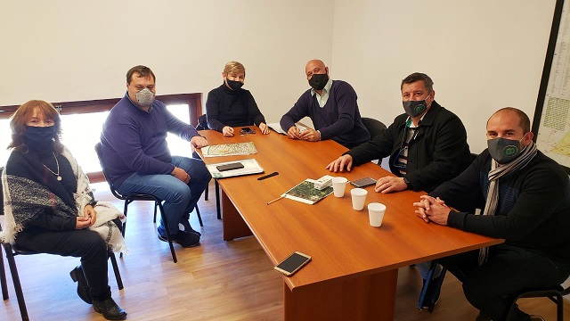 La intendenta Stella Clérici junto al presidente comunal de Bustinza, Fabian Ballori, se reunieron en el Ministerio de Infraestructura, Servicios Públicos y Hábitat provincial para avanzar en las gestiones para llevar el gas al parque industrial 2 y Bustinza.