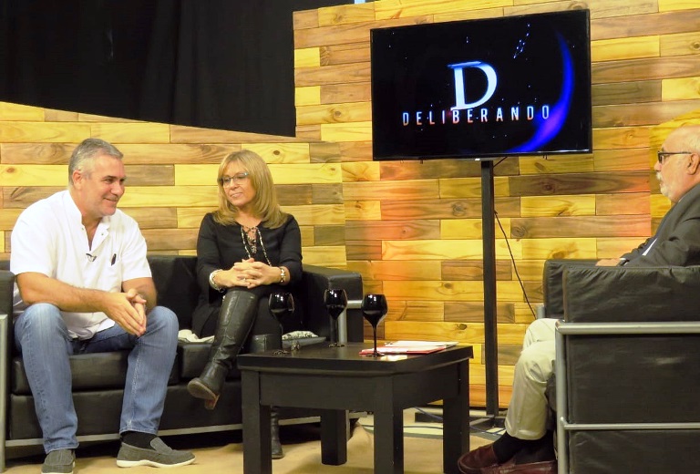 ARMSTRONG. Junto al Dr. Mauro Alesandrelli, quien encabeza la lista de concejales para Las Parejas “Unidos por Santa Fe” –liderado a nivel provincial por Giaccone-, participaron del programa de TV “Deliberando”, emitido por Cable Imagen Armstrong. Fueron entrevistados por los periodistas Graciela de la Casa y Oscar Crispino.
