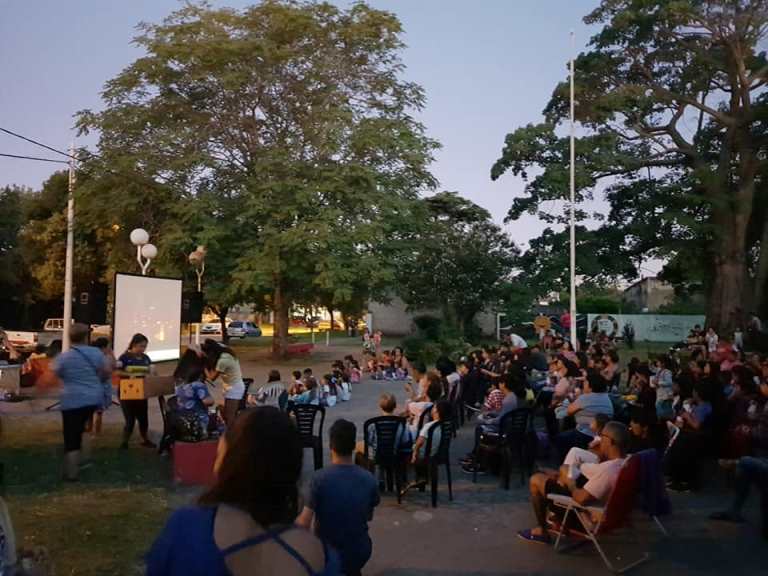 Si bien había sillas a disposición, los vecinos se acercaron con su reposera, conservadora con bebidas y comidas y/o el equipo de mate. Los organizadores del Departamento de Juventud, repartieron pochoclos entre niños y adultos.