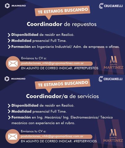 Grupo Martínez, se encuentra en la búsqueda de profesionales para cubrir dos puestos clave en la localidad de Realicó.