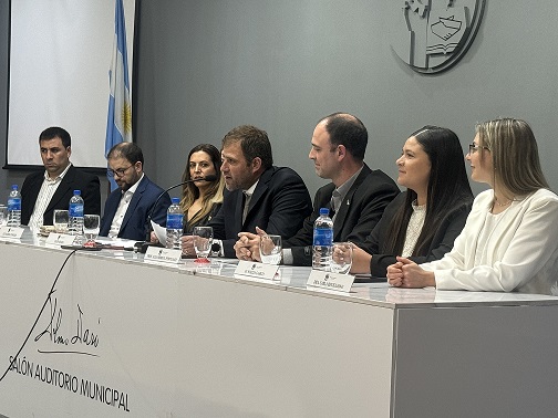 De la sesión extraordinaria del Concejo Deliberante participaron los ediles de todos los bloques, Emiliano Gramigna, Jesús Urquía, Luz Marina Fischer, Noelia García y Carla Revigliono, encabezados por el presidente del cuerpo, Prof. Alejandro Pertusati.