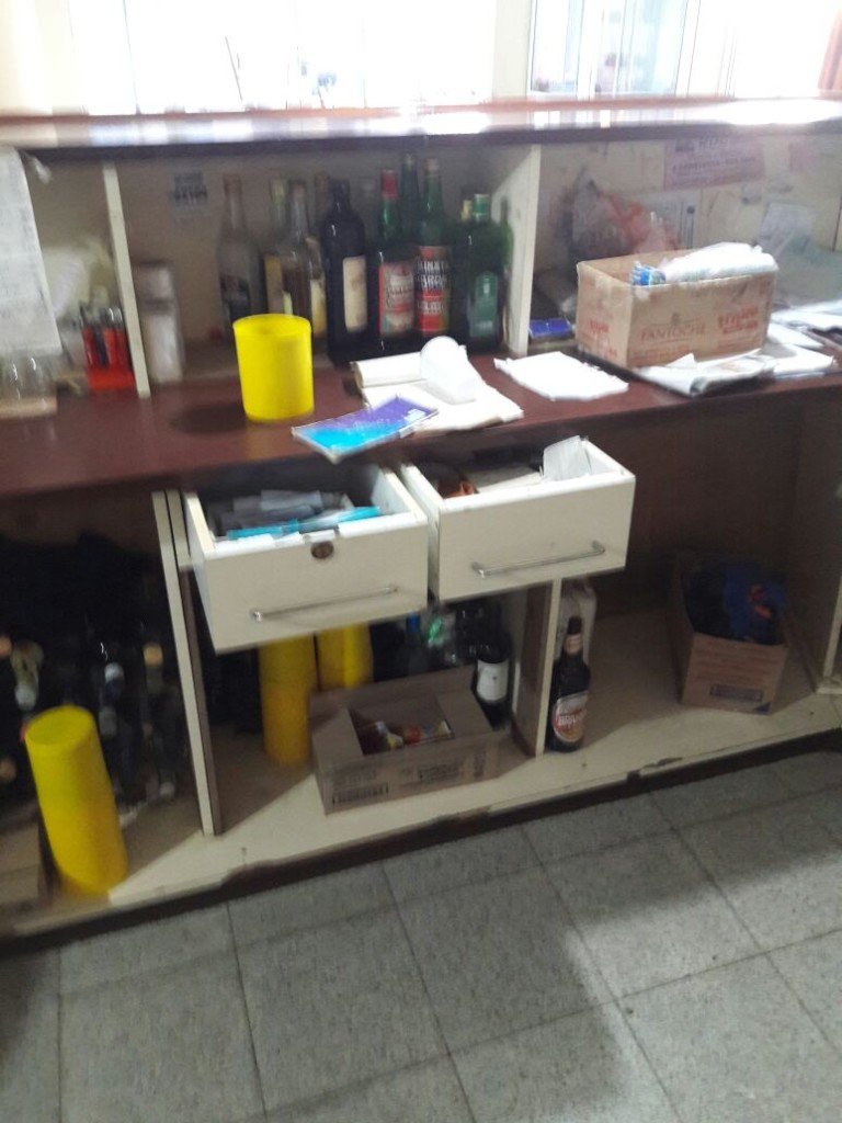 Aunque parezca una reiteración informativa, aunque parezca increíble, es lamentablemente cierto. El lunes, quedó asentada una nueva denuncia, en la Comisaría local, ya que luego de forzar la ventana, ingresaron ( por sexta vez) a robar, mercadería y el escaso dinero que había ( monedas), una mochila, algunas golosinas, dejando una vez más, la enorme sensación de inseguridad e impunidad, que despiertan, éste tipo de hechos. » Revolvieron todo ( ver foto ) se llevaron, lo que se llevaron, y se fueron con total impunidad » dijo, Carmen, concesionaria del bar, ya casi resignada y, según su relato, » cansada de que nos roben y violenten nuestro lugar de trabajo..!»