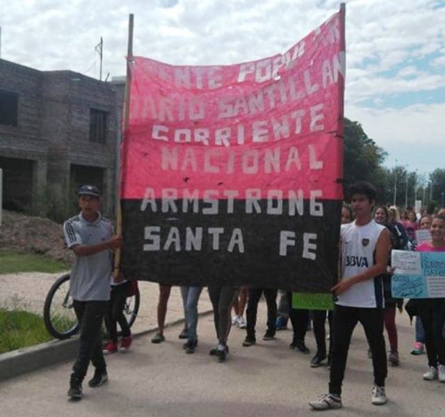 El centro de Armstrong, se empaño de un paisaje atípico con integrantes del Frente Popular Darío Santillan quienes marchaban bajo el lema “Pan, Techo y Trabajo”, llevaban cartelería y afiches que los identificaba y repartían volantes de manera pacífica a los transeúntes, los cuales expresaban “AUMENTOS DE PROGRAMAS DE EMPLEOS ACORDE A LA CANASTA BASICA DE ALIMENTOS Y TARIFAS: UNIVERSALIZACION EFECTIVA DE LOS MISMOS. ARMSTRONG/CAÑADA DE GOMEZ”.