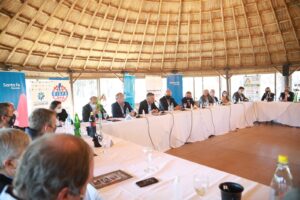 En horas del mediodía las autoridades estuvieron presente en las instalaciones de Sportivo donde varias de ellas, incluido el Gobernador Omar Perotti, se dirigieron haciendo referencia a la situación actual de la Industria, para posteriormente y previo a una conferencia de prensa servirse un lunch a los presentes.