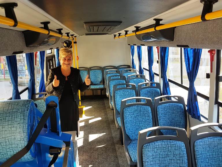 La intendenta Clérici presentó el minibus que compro el municipio.