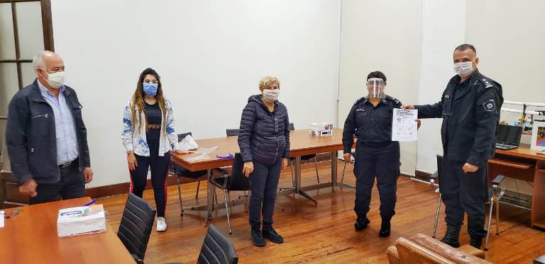 Como parte de las acciones conjuntas en el marco de la emergencia sanitaria por la pandemia de COVID-19, Municipio, FUDECA y productores locales donaros máscaras faciales de protección para el personal Policial y de Bomberos