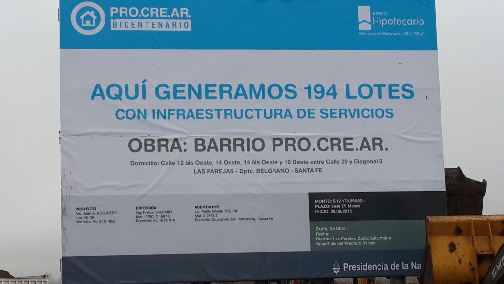 Las Parejas. Apertura de Calles en loteo Procrear: