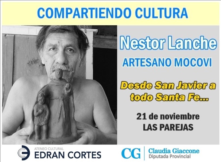 El próximo martes 21 a partir de las 14hs en Las Parejas, y en instalaciones del espacio «ALAS» (Calle 20 N° 1269) se presentará bajo la organización del Ateneo Cultural «Edrán Cortes», al ARTESANO MOCOVÍ NÉSTOR LANCHE.
