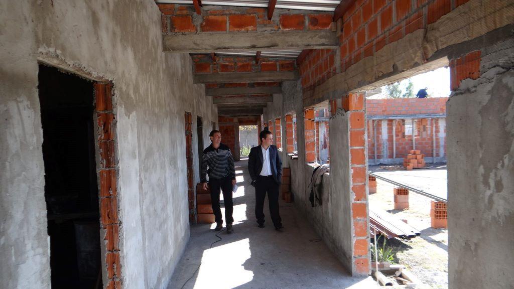 Actualmente, y luego de la finalización de la etapa de mampostería de paredes perimetrales y de cierre, se trabaja en la ejecución de encadenados y soportes de perfilería de techo en el sector del SUM, Cocina y Depósito, con vistas a la colocación de las chapas de cubierta en la próxima semana. El resto del edificio: ala de consultorios, ingresos, y sector de aulas, ya se encuentra con la cubierta colocada, y hormigonados los sectores respectivos del techo donde se asentarán los tanques y los tabiques que conforman el frontispicio del ingreso. Simultáneamente con el techado, se están ejecutando los revoques interiores y exteriores del sector donde el techo ya está terminado, tareas que se ejecutan cuando las condiciones del tiempo no permiten el trabajo exterior, y evitan de esta forma retrasos en la obra debido a factores climáticos. Al culminarse la etapa de techados y revoques, se comenzará con las instalaciones, de acuerdo con el cronograma de tareas de la obra, oportunamente aprobado. Se está laborando a buen ritmo, con la cuadrilla de operarios que se capacitaron en oportunidad de la obra de la Casa del Bicentenario, y que actualmente prestan sus servicios en esta obra, que a su finalización constituirá un ícono más de la tarea social inclusiva llevada a cabo por nuestra Municipalidad, tanto en su construcción como en su funcionamiento posterior.
