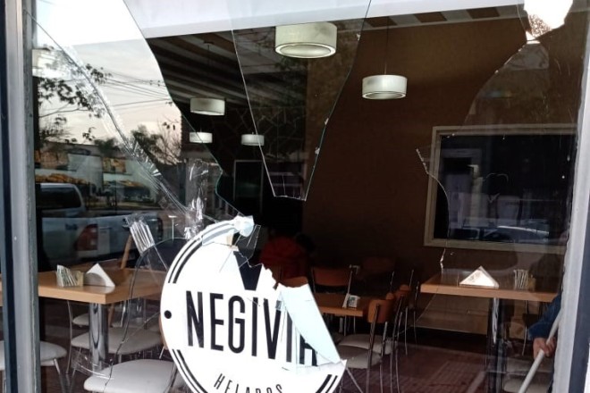 La novedad policial de las últimas horas da cuenta de un hecho de daño en pleno centro. Autores desconocidos en plena madrugada de este domingo con un objeto contundente causaron la rotura de uno de los ventanales del local comercial «La Baguette» ubicado en calle 20 al 900.