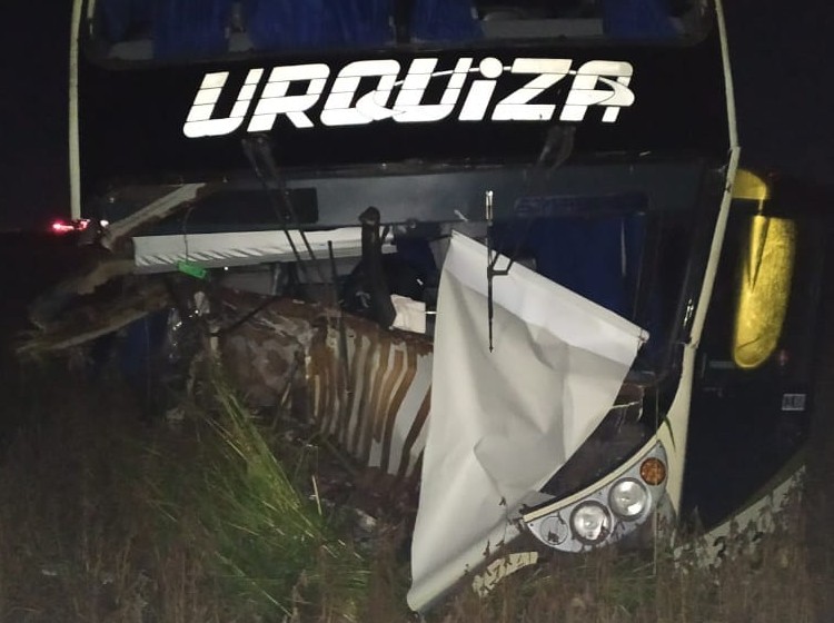 El Automóvil es VW marca Vento y un Colectivo de larga distancia de la Empresa Gral Urquiza SRL Mercedes Benz Interno 3331.