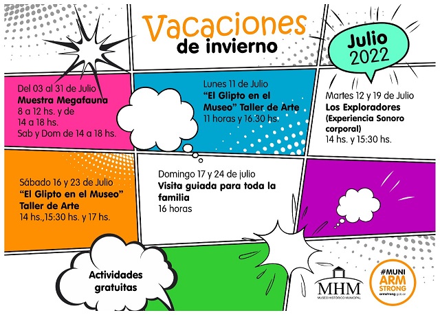 La Municipalidad de Armstrong invita a todos los niños de la ciudad a sumarse a las diferentes propuestas totalmente gratuitas que se ofrecerán en el Museo Histórico Municipal durante las vacaciones de invierno.