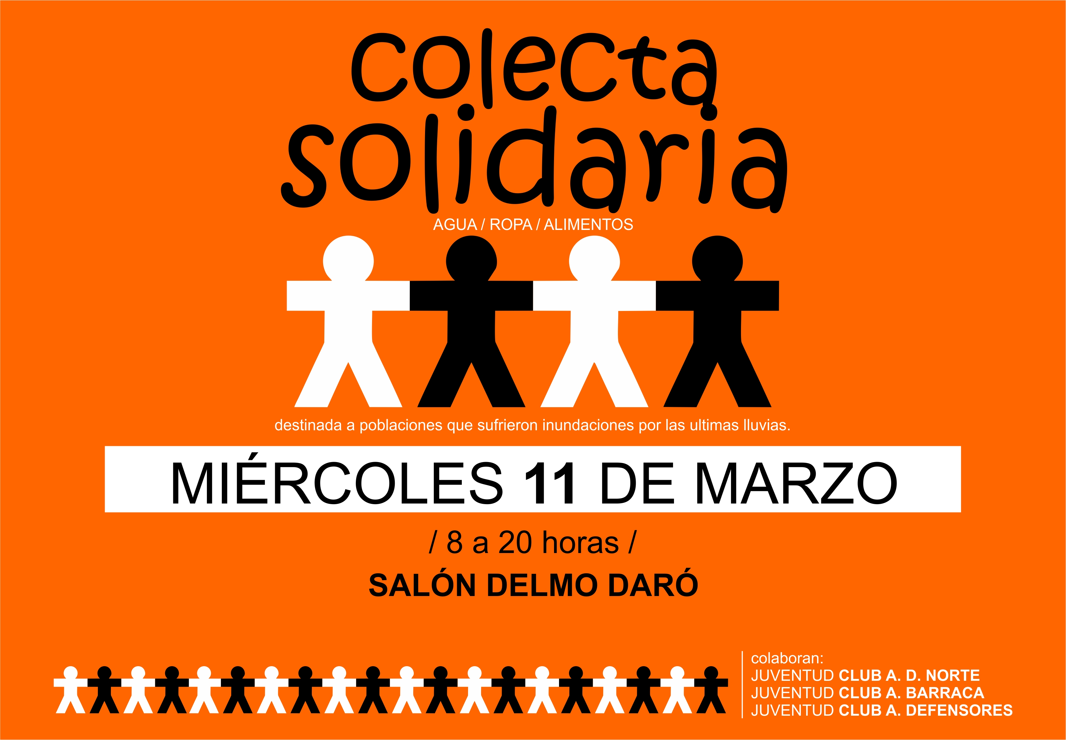 Esta organización contará con la colaboración de las juventudes de los clubes Norte, Defensores y Barraca. Se recibirá agua, ropa, alimentos. Todo será bienvenido ya que hay poblaciones enteras que debieron ser evacuadas.