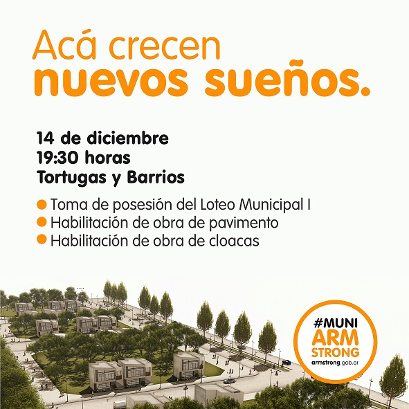El día miércoles 14 de diciembre a partir de las 19:30 hs. en la intersección de calles Barrios y Tortugas, la Municipalidad de Armstrong llevará a cabo la habilitación de obras.