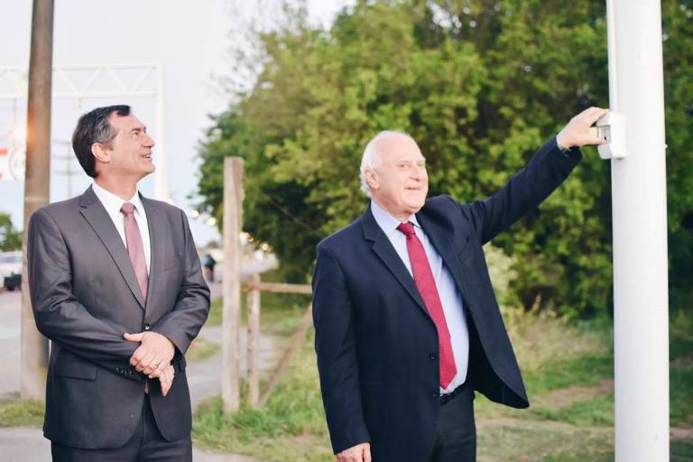 Luego de la inauguración oficial del pavimento en Bv. Villa María, el Sr. Gobernador de la Provincia de Santa Fe junto al Intendente Dr. Pablo Verdecchia y demás autoridades, se trasladaron a la intersección de Ruta Provincial N° 15 y calle Flotron para realizar el encendido simbólico de la nueva luminaria led del lugar.