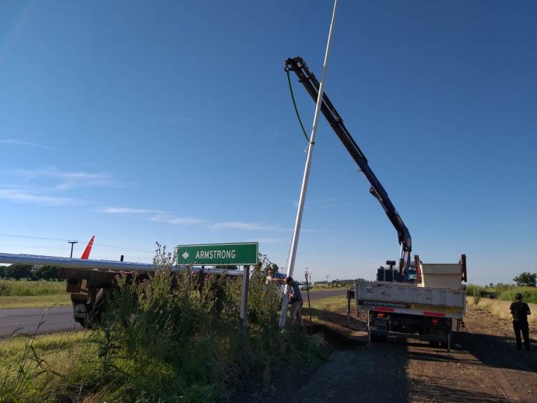 La Municipalidad de Armstrong se encuentra ejecutando nuevas obras de iluminación sobre la Ruta Provincial Nº 15 con una inversión para mejorar la seguridad vial que asciende a más de $ 4.000.000.