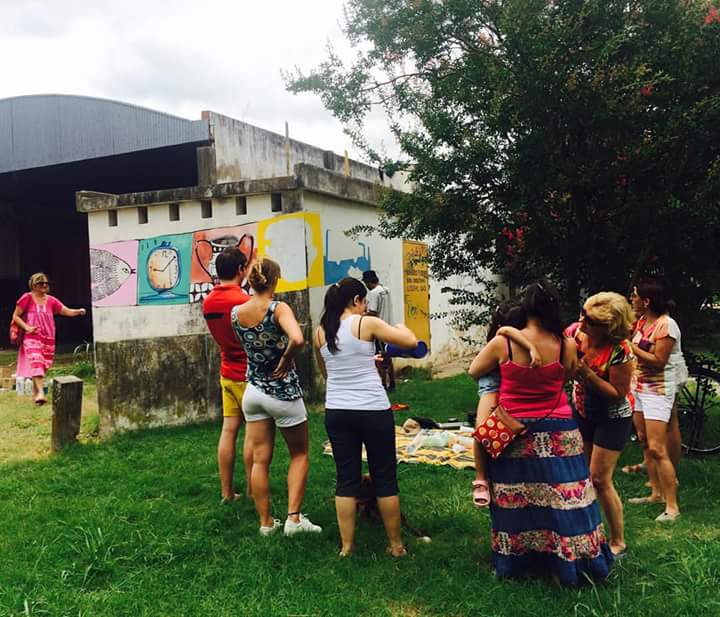 Unos jóvenes tomando mates y riéndose no constituyen una novedad, pero si uno prestaba atención, veía que estaban rodeados de aerosoles de pinturas, pinceles y una escalera. Y si uno levantaba la vista podía observar una pared con dibujos y colores que la transformaban en una expresión de arte y libertad.
