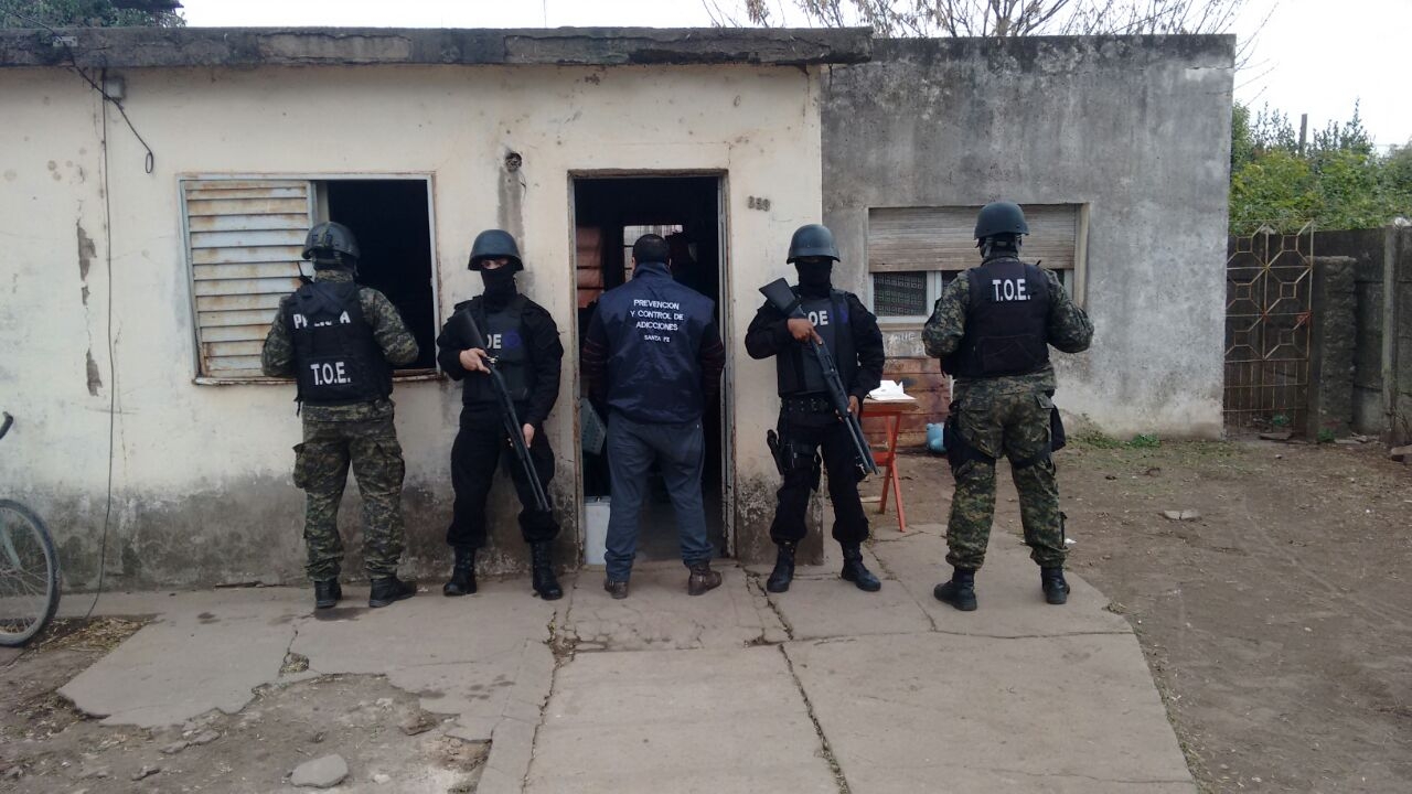 DROGAS 1La brigada Operativa Departamental III a cargo del Oficial Principal Ochoa Rodrigo, dependiente de la Dirección de Prevención y Control de Adicciones, el día de ayer sábado 13 del corriente siendo las 9 hs procedió a diligenciar Orden de Allanamiento emanada del Juzgado Federal de Rosario Nro. 4 a cargo del Dr. Bailaque en la localidad de Las Rosas en unas vivienda de calle Ayacucho apuntada como punto de venta de sustancias estupefacientes. En el lugar se detuvo a un hombre de 48 años, secuestrándose aproximadamente 1 kilo de droga (cocaína) , municiones correspondientes a armas largas de guerra, telefonos celulares y dinero en efectivo.