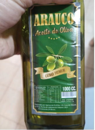 - Aceite de Oliva Calidad Premium, marca Arauco, RNE: 24589668 – RNPA: 24555178,
