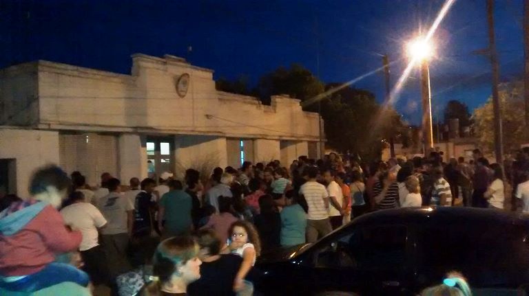 Ya en horas de la noche, al no tener una información precisa los vecinos comenzaron a convocarse de manera pacífica frente a la Comisaría. El grupo superaba las 100 personas y recibieron la palabra del Comisario Francisco Bengolea, una de las autoridades de la fuerza policial de la UD Marcos Juárez.