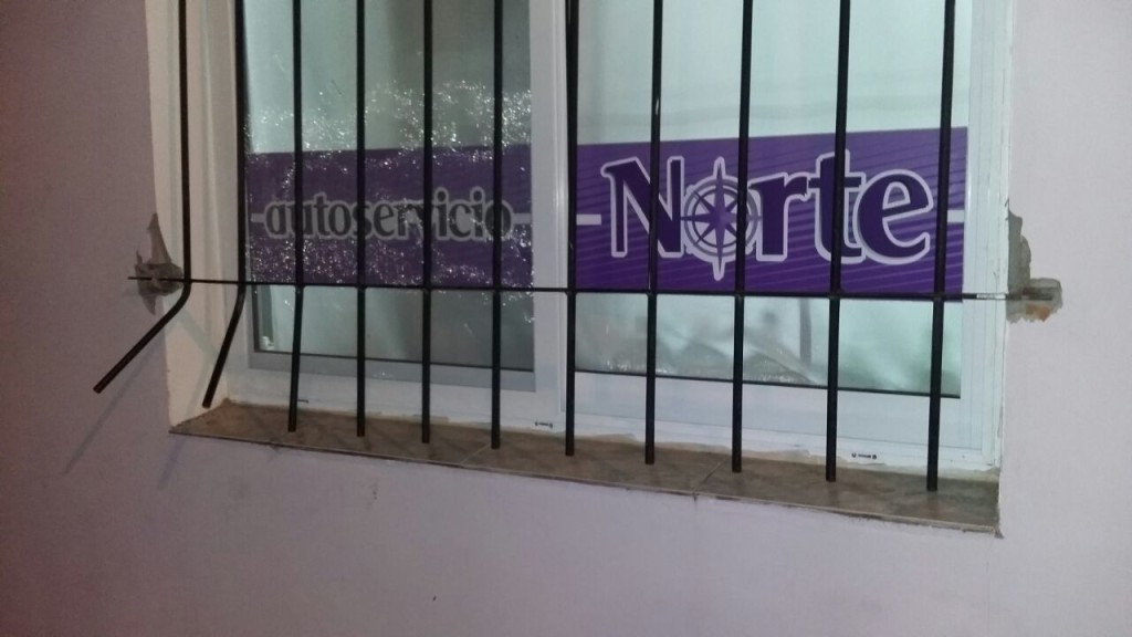 Las propietarias del Autoservicio Norte, ubicado en Belgrano e Irigoyen, denunciaron en sede policial, que encontraron una reja violentada ( de una ventana, ubicada sobre calle Irigoyen, ver foto) y a pesar de que no ingresaron, en el intento tumbaron bebidas que estaban apiladas dentro del local. Este hecho, se suma, al robo cometido en el bar de la Terminal de Omnibus, lo que hace presumir, que se trataría de los mismos delincuentes.