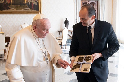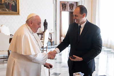 El senador provincial por el departamento Iriondo, Hugo Jesús Rasetto, fue recibido por el Papa Francisco en audiencia privada en la Biblioteca del Palacio Apostólico, del Vaticano.