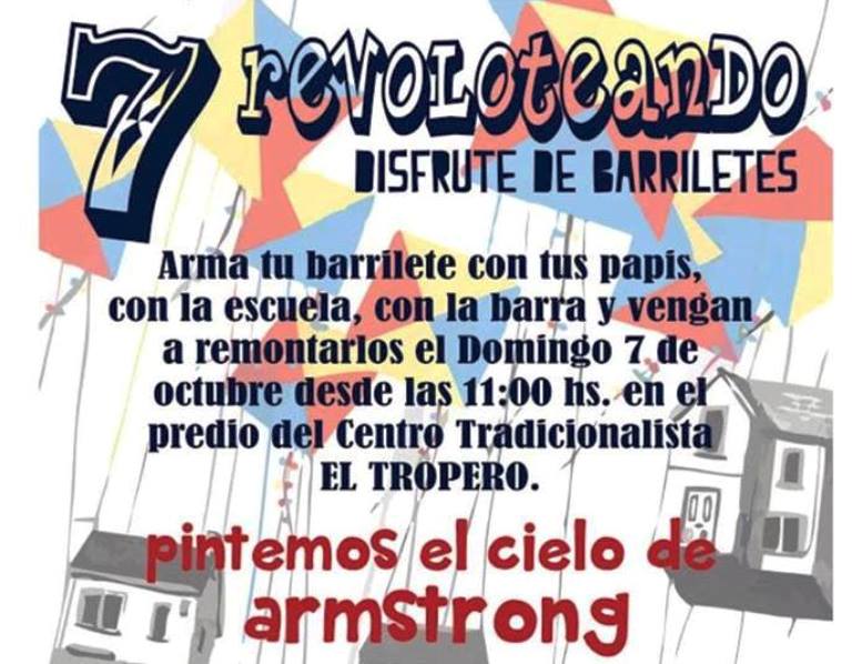 Rotary-barrileteRotary Club Armstrong invita a la 7ma Edición de “Revoloteando”, disfrutes de barrilete. Con la colaboración de la Biblioteca Popular Sarmiento, los Clubes Rotarac e Interac, y el Centro Tradicionalista “El Tropero”.