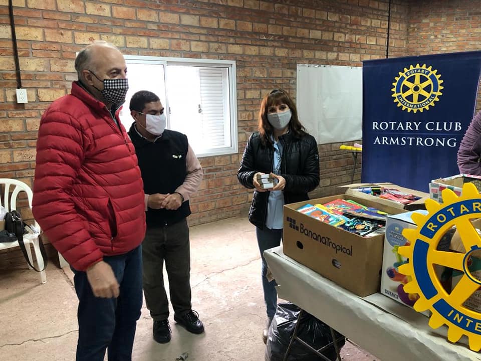El pasado sábado 18 de julio, en la casa rotaria, representantes de Rotary Club Armstrong, Rotaract, Interact, juventudes de los clubes Barraca, Defensores y Norte y Gimnasio PRP hicieron entrega de importante donación a la presidenta del Grupo de Voluntarias del Hospital de Niños «Víctor J. Vilela» Cecilia Forniglia, $ 13.000.- recaudados en las alcancías distribuidas en diferentes comercios y libros, juegos y útiles para la sala de Oncología. (Obra que se viene llevando a cabo desde hace algunos años y lo mas importante es la interacción de los jóvenes referentes de las distintas entidades locales)