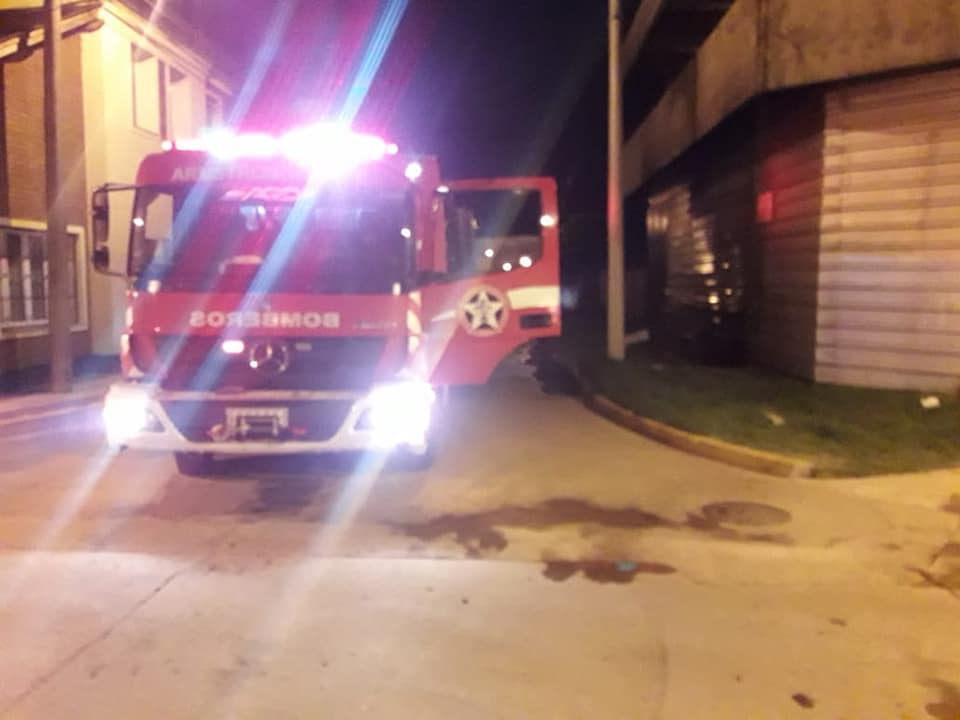 En la madrugada de hoy, viernes 11 de enero, a las 2,40am la guardia de bomberos sale por un incendio en un canasto de basura de gran tamaño, ubicado en calle Fischer y Chile.