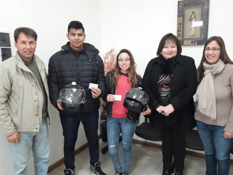 A partir de una iniciativa de la Agencia Provincial de Seguridad Vial, la Comuna de Correa entregó cascos a jóvenes de entre 18 y 20 años que sacaron por primera vez su carnet de conducir que los habilita para manejar motocicletas.