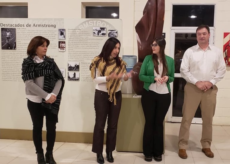 La artista añadió: “Hace un tiempo presente una muestra y esta tiene que ver con lo mismo, traer gente del pasado al presente, y de ahí surge el fotomontaje, esta vez con Pioneros, gente que tiene mucho que ver con la historia de Armstrong”.