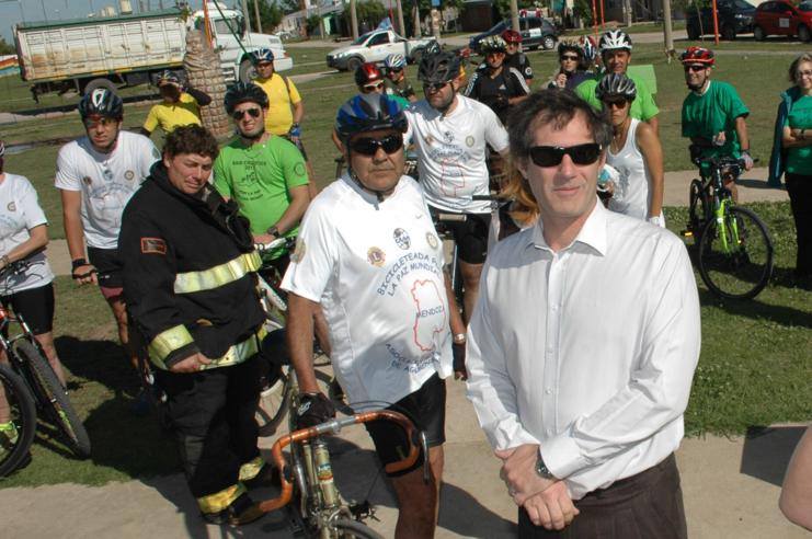 Agentes de tránsito locales y Bomberos Voluntarios acompañaron a los ciclistas hasta el cruce de las rutas Nº 9 y Nº 178.