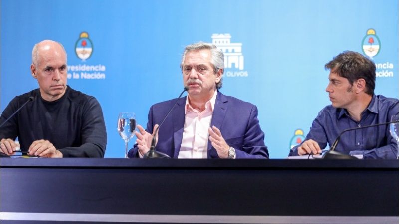 “Si tomamos el problema de chiquito, vamos a evitar que crezca”, expresó el jefe de Estado, acompañado en la conferencia por el gobernador bonaerense, Axel Kicillof, y el jefe de Gobierno porteño, Horario Rodríguez Larreta.