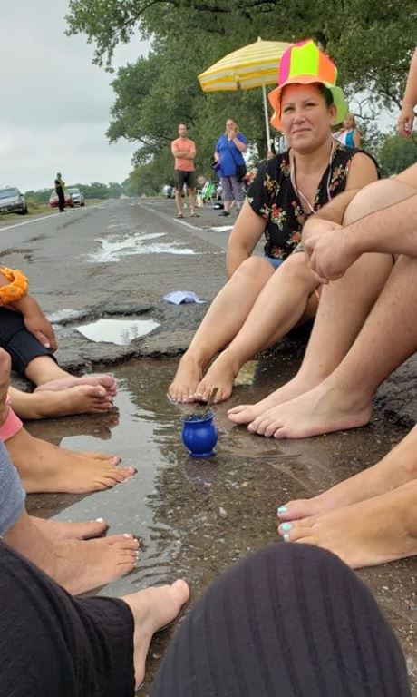 El pasado sábado el reclamo se vistió de color ya que vecinos habían llevado sobrillas, había agua en los baches donde los mismos remojaban sus pies debido al intenso calor, trabajaron en cartelería, a pesar de varios pedidos formales y con cortes de ruta, no han sido escuchados por vialidad nacional. El deterioro de la calzada provoca dificultades de circulación y un peligro constante para los conductores.
