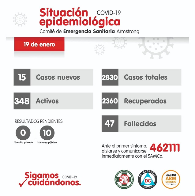 Situación Epidemiológica de Armstrong. Web: www.F10WebMedia.com enero 21, 2022 by Diario Armstrong 0 comments 801 viewson Deliberando, Diario Armstrong y Región, Locales, Prevención y Salud Share this post Facebook Twitter Google plus Pinterest Linkedin Mail this article Print this article Next: Homenaje a Cooperativistas en el 48vo aniversario . Previous: Localidades de la provincia recibieron nuevas máquinas para la Gestión de Residuos.