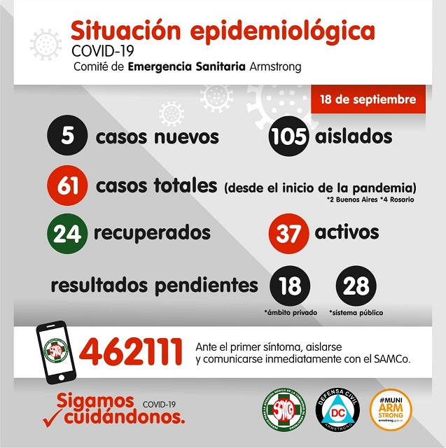 Situación Epidemiológica de Armstrong. Viernes 18 de Septiembre.