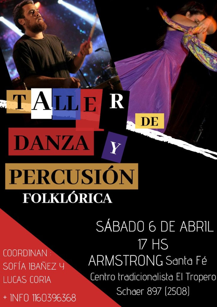 Se realizará un taller integral de danza y percusión ( bombo leguero ) folklórica con la intención de transmitir nuestra raíz , nuestra cultura a través del movimiento y el ritmo .