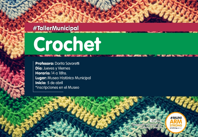 La Municipalidad de Armstrong mediante la Secretaría de Educación, Cultura y Deporte invita a participar del taller de tejido crochet, cuyas clases se inician el día 5 de abril en el Museo Histórico Municipal.