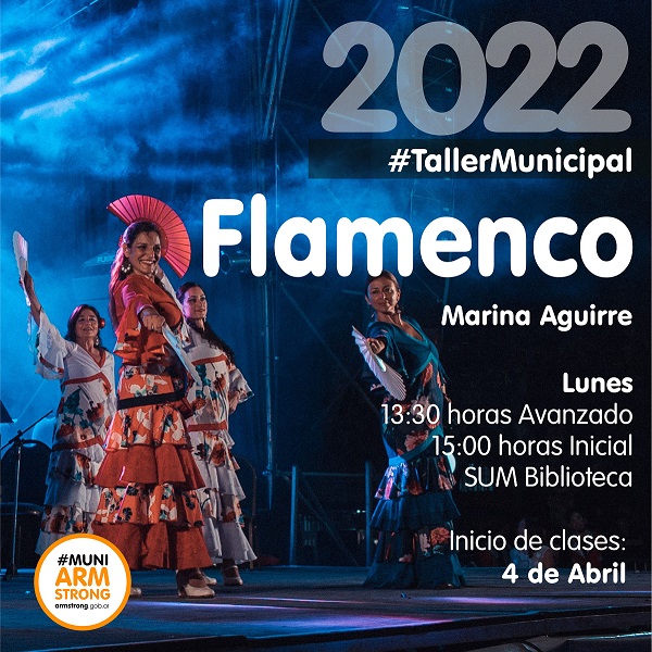 La Municipalidad de Armstrong invita a los interesados a sumarse al taller de danzas flamencas a cargo de la Prof. Marina Aguirre, todos los días lunes en el sum de la Biblioteca Popular Sarmiento.