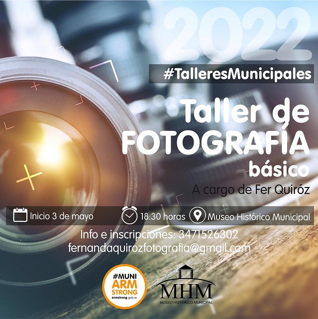 La Municipalidad de Armstrong invita a los interesados a participar del taller básico de fotografía profesional que se desarrollará a partir del 3 de mayo, todos los martes, a las 18:30 hs. en el Museo Histórico Municipal.