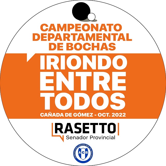 Este domingo 30 de octubre, en las canchas de bochas de los clubes de Cañada de Gómez, Correa y Totoras, organizado por el Senador Hugo Jesús Rasetto en conjunto con la Asociación Cañadense de Bochas, se llevará a cabo el Torneo Departamental de Bochas “Iriondo Entre Todos”, del que pueden participar todos los clubes de Iriondo afiliados o no a la Asociación Cañadense de Bochas, modalidad parejas de dos y cuatro puntos.