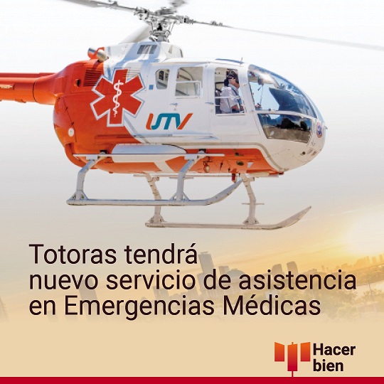 Este Lunes 8 de febrero a las 10 hs, el Municipio de Totoras firmará un convenio con la empresa UTV para que la ciudad cuente con el servicio de un helicóptero sanitario. La unidad se encuentra equipada con equipos de alta complejidad y, también, con un médico especialista.