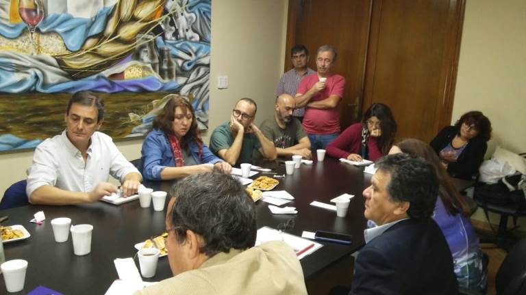 solis-prensa-1- El presidente de la Comisión de Asuntos Laborales, Gremiales y de Previsión, el socialista Miguel Solis, acompañado por sus pares Verónica Benas(Pares) y Carlos del Frade(FSP), se reunió en Rosario, en el anexo de la Cámara de Diputados, con representantes del Sindicato de Prensa Rosario, locutores, delegados y empleados de la emisora LT3.