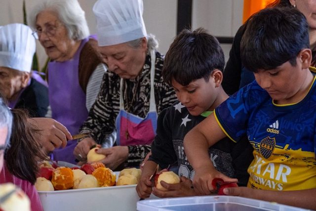 charla y charla, vivieron la experiencia de preparar juntos una rica ensalada de frutas.