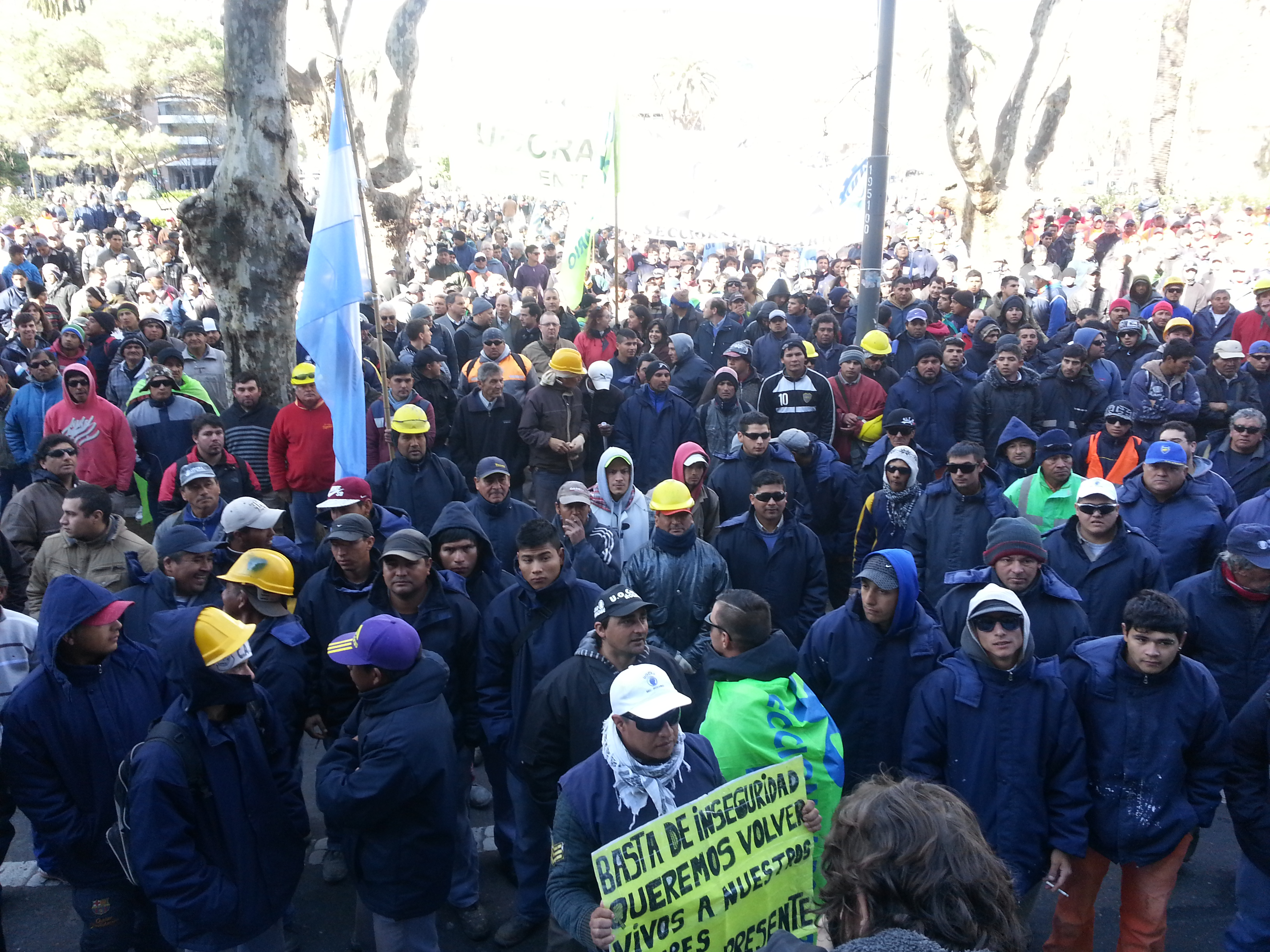 Con un efusivo aplauso y al grito de “Justicia”, antes de desconcentrarse en forma pacífica, los trabajadores de la construcción acompañaron a su conductor, Carlos Vergara, hasta una puerta lateral del edificio de Gobernación para entregar un petitorio dirigido al gobernador. El dirigente ingresó a la sede gubernamental acompañado por familiares de víctimas y reiteró su intención de concretar para mañana una reunión con el mandatario.