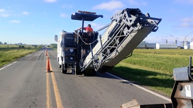 Con personal y equipos del 7º Distrito Santa Fe, esta semana se realiza el fresado de deformaciones de la calzada para quitar ahuellamientos. En las tareas se utilizan equipos que requieren la reducción del carril intervenido, con paso alternado coordinado por banderilleros.